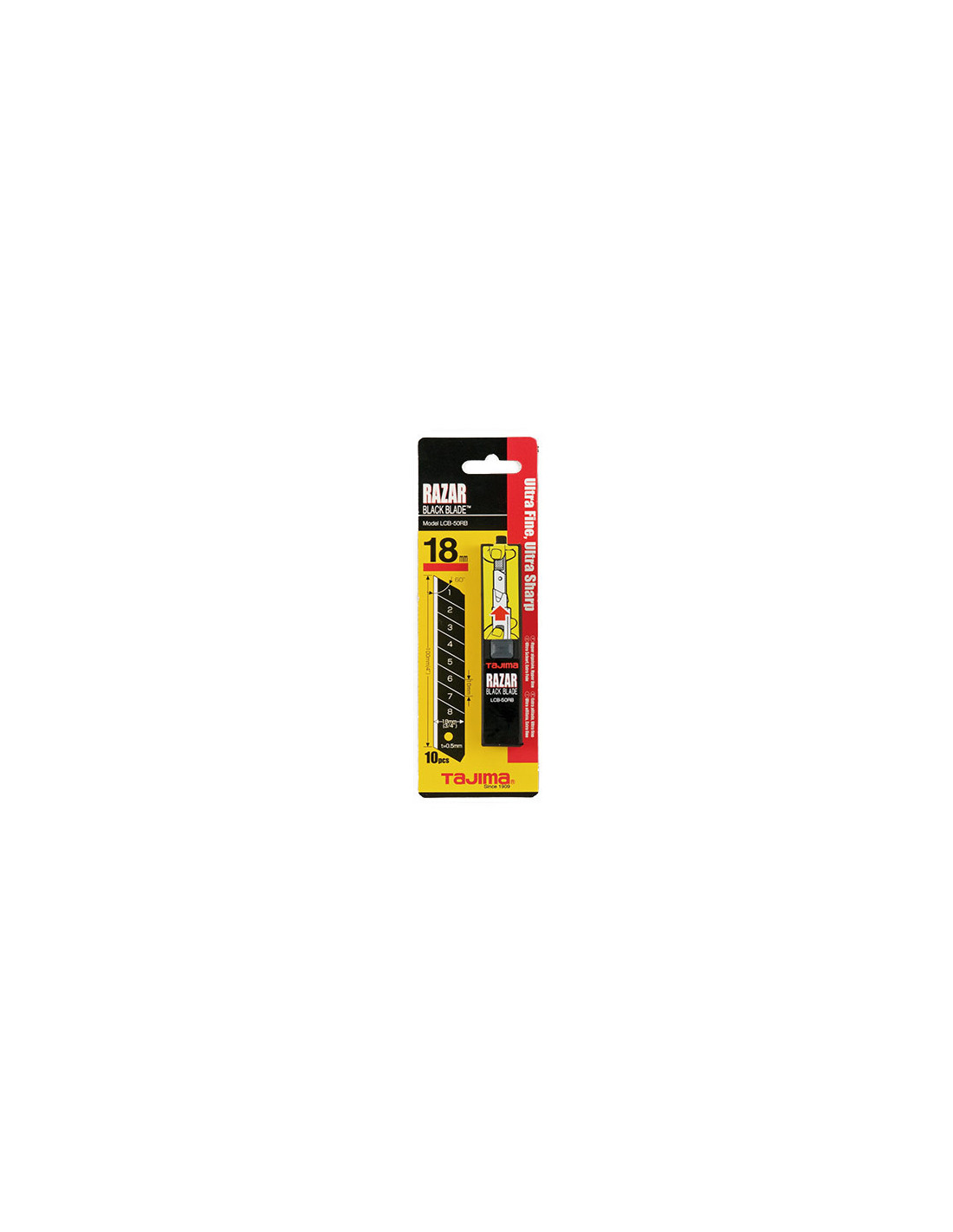 Tajima Razar Black 18 mm murdterad tagavad tipptasemel lõikamisvõime nii professionaalidele kui ka tavakasutajatele, kes hindavad täpseid ja usaldusväärseid tulemusi. Terad on valmistatud SK-120 tööriistaterasest ning kaetud spetsiaalse musta kihiga, mis tagab üliterava ja puhta lõike erinevate materjalide puhul, nagu paber, kile, kartong ning kerge käsitöö või pakendamistööd. Ühes pakendis on 10 tera, mis on mugavas hoidikus turvaliseks säilitamiseks ja kiireks tera vahetamiseks – nii on alati terav lõiketera käepärast.