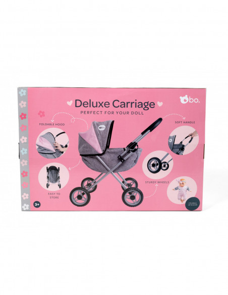 Deluxe nukuvanker on vajalik aksessuaar iga lapse nukukollektsioonis. See võrratu käru mahutab kuni 42 cm pikkuseid nukke, pakkudes mugavat ja stiilset transpordivõimalust. Tugevate rataste ja pehme käepidemega pakub käru sujuvat liikumist, tagades, et teie nuku teekond oleks nauditav ja vaevatu. Kerge kaaluga ja kompaktse disainiga on Deluxe nukukäru ülimalt mugav kaasas kanda ja hoiustada. See on valmistatud moekast halli ja roosat värvi kangast, lisades elegantsi igasse kaasaegsesse interjööri. Kangavalik peegeldab kaasaegseid disainitrende. Kärul on ka kokkupandav katus, millel on bo. logo elegantne trükk. See võluv detail mitte ainult ei anna kärule autentsuse tunde, vaid pakub ka teie nukule täiendavat kaitset ilmastikuolude eest. Stiili ja praktilisuse kombinatsioon teeb sellest ideaalse valiku teie armastatud nuku jaoks. Naudi mänguaja võlu Deluxe nukukäru abil - suurepärane mänguasi, mis ühendab funktsionaalsuse ja stiili.
