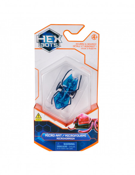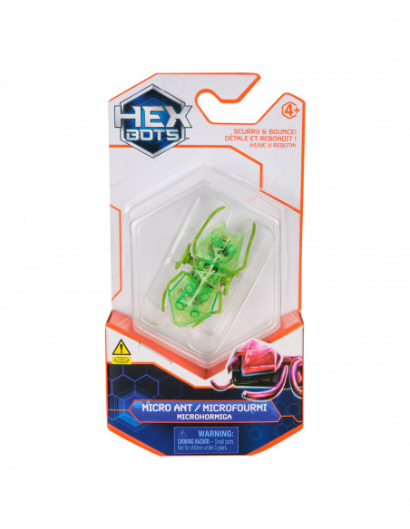 Avasta Planeet HEXBOTS maailm! Avasta selle maailma robootilised imed! Need pisiksed droidid roomavad ja siblivad end sinu kujutlusvõimesse. HEXBOTSi Mikro sipelgas on kiireloomuline robot kes sibab ereinevates suunades ja põrkub pindadelt millega kokku puutub. Kuhu läheb ta järgmisena? Neid elektroonilisi sitikaid saab kasutada oma enda lugude jutustamiseks, koduloomana pidamiseks, sõprade ja pere ehmatamiseks ning kasvõi isepäi nautimiseks! Nad sobivad nii lastele mängimiseks kui täiskasvanutele kontoris valla päästmsieks. HEXBOTSi mikro sipelgad on iseliikuvad, motoriseeritud, putukalaadsed olendid, mis on ühed meie väikseimatest! Nad on superkiired ja ruttavad üle erinevate tasapindade - proovi koguda kõik viis erinevat! Ehita oma enda robootiline sipelgapesa. Tähelepanu: Töötavad kõige paremini kõvadel pindadel.