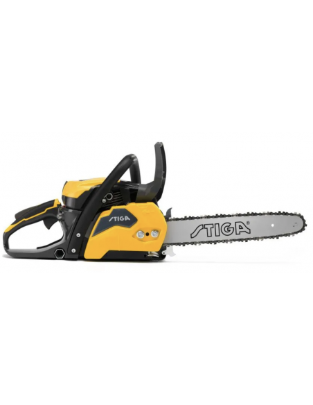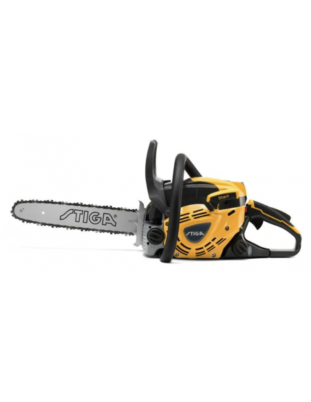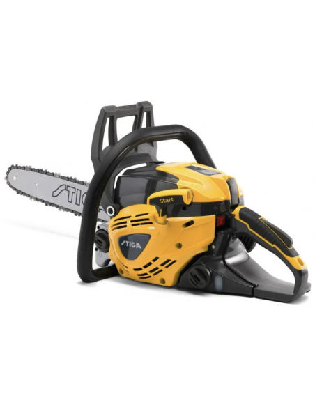 The STIGA CS 540 (14")chainsaw with 35 cm (14") bar is powered by a 38.5 cc (1.6 kW) engine, making it reliable and powerful yet lightweight. The magnesium engine cover ensures robustness, reliability and quick cooling. The oil pump is automatic and adjustable. Maintenance operations can be performed quickly and easily thanks to a number of features; such as the tool-less handle on the air filter cover without the need for additional tools, the tensioning wrench located under the rear handle and the fuel tank level monitoring window. The ergonomic soft-touch handle and spring system ensure reduced vibrations and greater comfort.