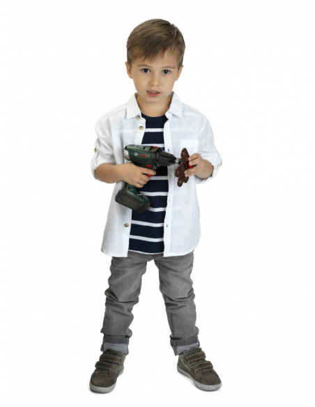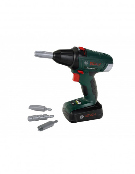 Klein means in German „small“ and that’s what company makes - everything small, so children can try out all variety of professions. For all small junior craftsmen: With Theo Klein´s screwdriver II in the original Bosch design, the little ones can compete with the older ones! The children´s cordless screwdriver II is as good as the big one: It works at two speeds, has a removable battery compartment, rotating drill and three different bits, realistic sounds, and light complete the fun. Make your child´s day joyful with this toy!