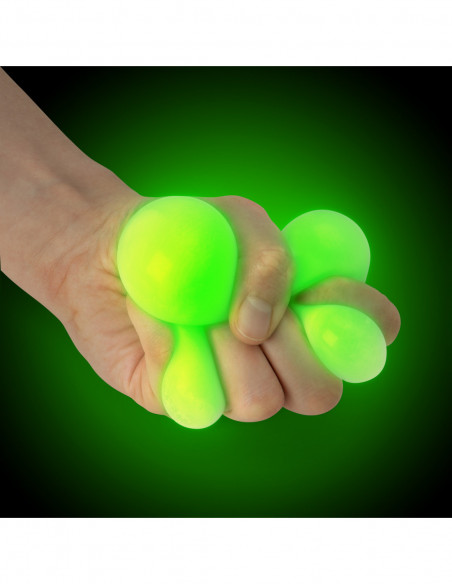 Stress ball fidget toy that’s very squidgy, stretchy and glows in the dark. This eerily green groovy glob is the perfect tool to help anyone unwind and relieve stress. It’s great fun and irresistible to squeeze. Plus, turn off the lights and it illuminates with a very cool green glow.