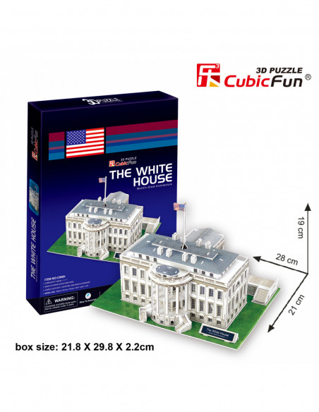 Kõigile meeldib puslet kokku panna, see on nii lõbus kui ka hariv tegevus. Pusled on suurepärased nii omaette või koos mängimiseks. Valge Maja on Ameerika Ühendriikide pealinnas Washingtonis asuv hoone, milles asub Ameerika Ühendriikide presidendi ametikorter ja töökoht - 3D pusle, mis pakub ehitamisel väljakutseid aga ka rohkelt rõõmu. Tulemuseks on atraktiivne kolmemõõtmeline makett, mis on ehteks igas kodus või kontoris. Pusleplaadid on valmistatud paberi ja vahtpolüstürooli segust, mida on kerge kokku panna. Liimi ja kääre ei ole vaja kasutada. Valmispusle mõõdud: 28 x 21 x 19 cm.