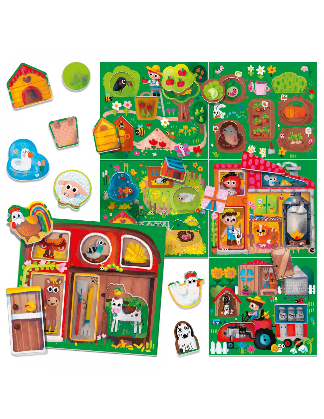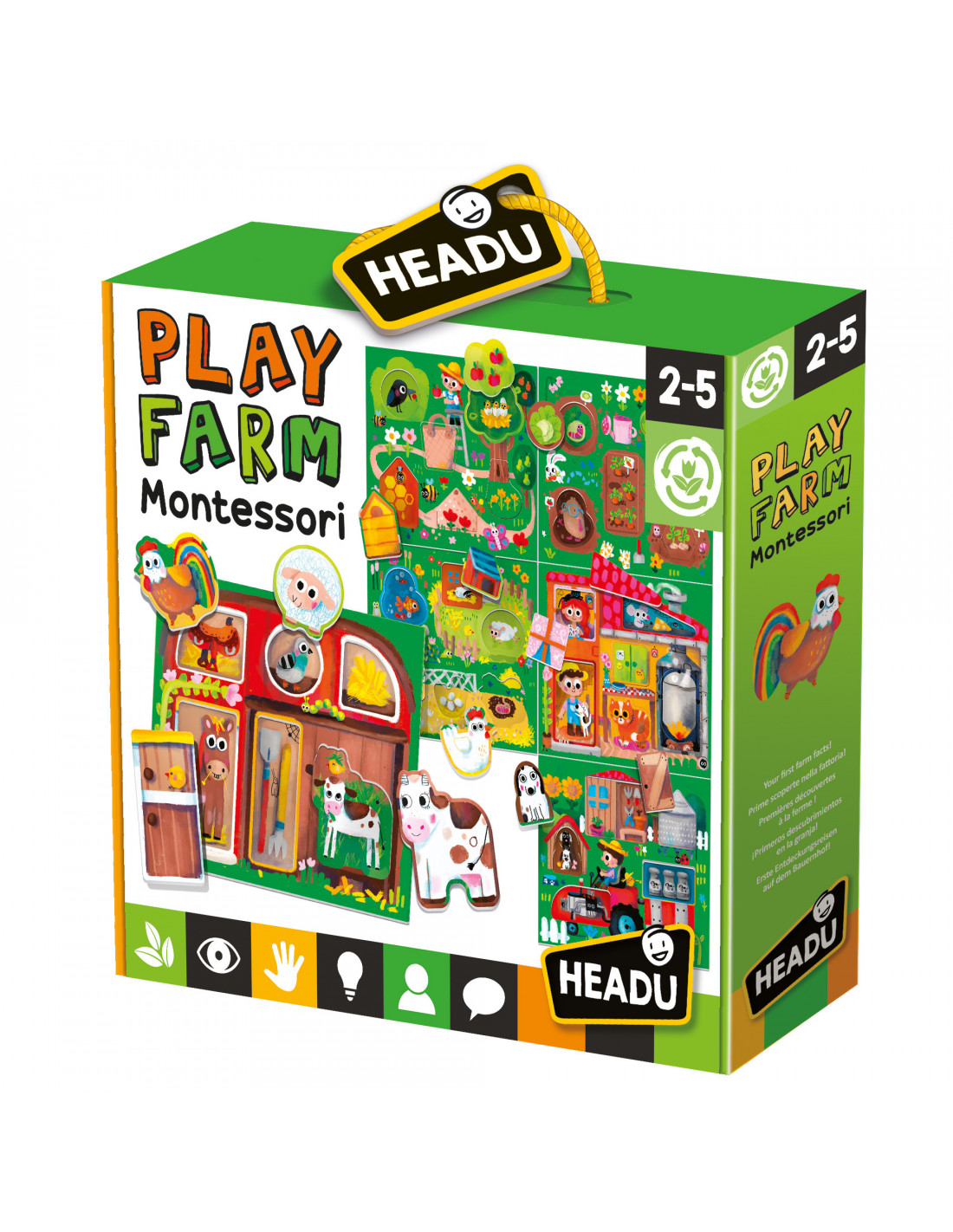 Headu disainib lõbusaid, kvaliteetseid mänge, mänguasju, raamatuid ja rakendusi, mis aitavad õpetada lastele olulisi oskusi, kasutades uuenduslikku õpetamismeetodit. Kes magab küünis? Mis kasvab aias? Kus hoitakse nisu? Lõbus pusle-mäng, kus lapsed saavad talus toimuva kohta palju õppida! Headu Montessori mängutalu on koostatud Montessori pedagoogika meetodeid järgides. Mäng on mõeldud lastele vanuses 2 - 5 aastat. Selles eas lastes on oluline arendada huvi ja uudishimu neid ümbritsevas maailma vastu, sest iga lapse potentsiaal on märkimisväärne. Avage karp koos lapsega ja näidake talle kuut talukaarti, paluge neil need kokku panna horisontaalseks ristkülikuks. Võtke nad ükshaaval kätte ja öelge valjusti, mis need on: talumaja, lehm, põld, silo, traktor, sisehoov, lambmas, köögiviljapeenar, puuviljaaed jne. Paluge lapsel neid enda järel korrata. Näidake lastele, et igal kaardil on väljavõetavad tükid (kaardi tagaküljel on augud, mis hõlbustavad nende väljavõtmist).