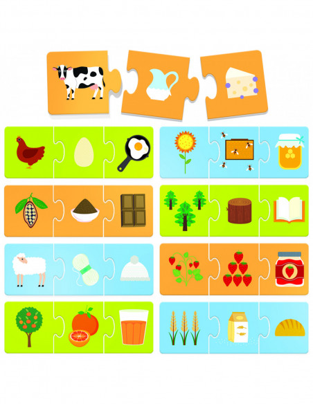 Originaalne ja lõbus mäng stimuleerib laste naturalistlikku intelligentsust ja uudishimu. Ühendusi kokku pannes saame avastada päritolu ja protsesse, mida kasutatakse paljude asjade saamiseks. Oskused: avastada, kust asjad tulevad; loogilise mõtlemise treenimine; uudishimu arendamine.