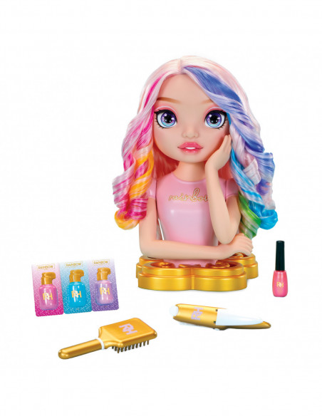 Esimene Rainbow High Styling Head 4in1 mängukomplekt sisaldab meie enimmüüdud ja fännide lemmikfiguuri Bella. Nüüd on sinu kord stiliseerida, värvida ja mängida ikka ja jälle. See mängukomplekt loob lõputu fantaasiarikka mängu.