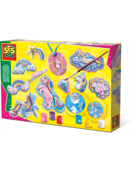 Kas ka sulle meeldivad ükssarvikud? Selle SES Creative´i komplekti abil saad valmistada mitmesuguseid kipsist ükssarvikukujusid. Vala kips vormi ja lase sel taheneda. Võta mõni komplektis olev värv ja värvi kaksteist kujukest selliseks, nagu soovid. Neid on vahva valmistada ja tulemus jääb suurepärane!