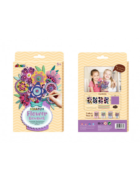 Aveniri erksavärvilised kraapimiskomplektid hoiavad lapsed tegevuses ja pakuvad neile värvikaid elamusi, lisaks arendavad need loovust ning kujutlusvõimet. Kraabi lillekujulisi lehti komplektis oleva spetsiaalse pliiatsiga ning loo värvilist kunsti. Iga tõmme spetsiaalse pliiatsiga eemaldab musta kattekihti ning paljastuvad kaunid värvid. Kui oled kraapimistööga lõpetanud, mässi õied spetsiaalsesse paberisse ning tee kaunis lillekimp!