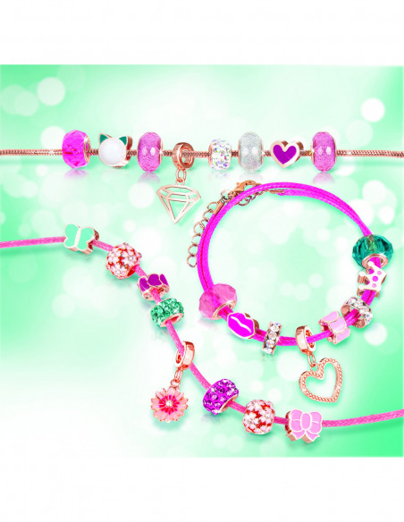 Tee oma kõige võluvaim käevõru. Selle komplekti roosa värvi variatsioonid koos säravate detailidega panevad sind tundma ennast tõelise printsessina.