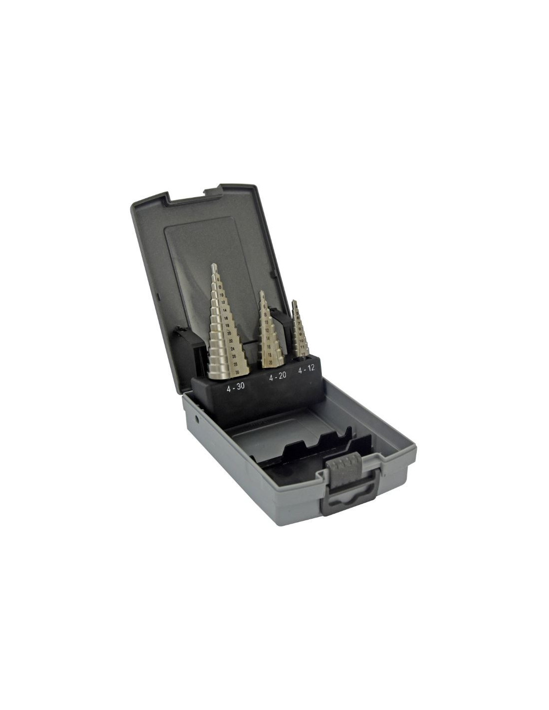 Tivoly koonilised HSS astmepuuride komplekt – 3-osaline Ø4–30 mm, sirged sooned, automaatne tsenterdus, kolmnurkne vars