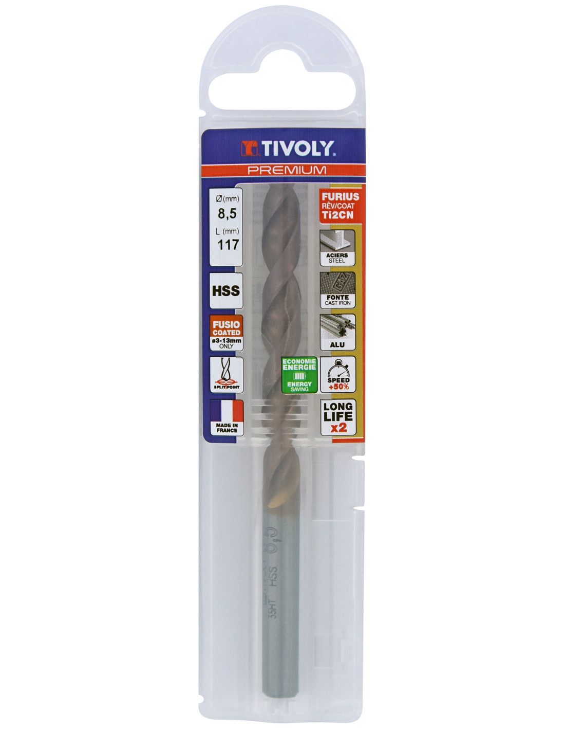 Metallipuur 8.5mm, FURIUS HSS, Ti2CN FUSIO, üleni lihvitud, Tipunurk terav (split point) 135°, jaepakend