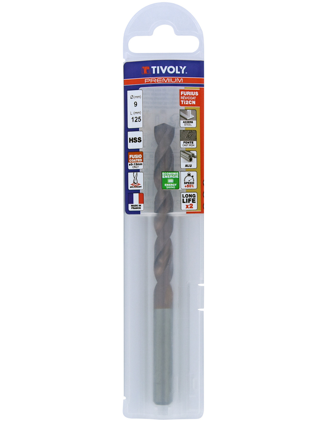 Metallipuur 9.0mm, FURIUS HSS, Ti2CN FUSIO, üleni lihvitud, Tipunurk terav (split point) 135°, jaepakend