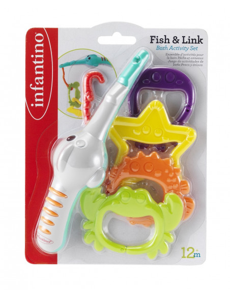 Infantino on imikutele mõeldud tootesari, mis on täis lõbusat ja läbimõeldud disaini, mis on valmis vanemate igapäevasteks seiklusteks oma laste kasvatamisel ja arendamisel. Infantino beebitooted aitavad teil ja teie väikestel koos kasvada, ning tagavad, et õppimis- ja tunnetusprotsess pole keeruline ja tüütu. Vinge õngekomplekt väikesele maailmaavastajale! Komplektis on väike õngeritv, millega lapsed kolme armast meretegelast püüda saavad. Ideaalne mänguasi pakkumaks väikelapsele veelgi lõbusamat vanniskäiku!