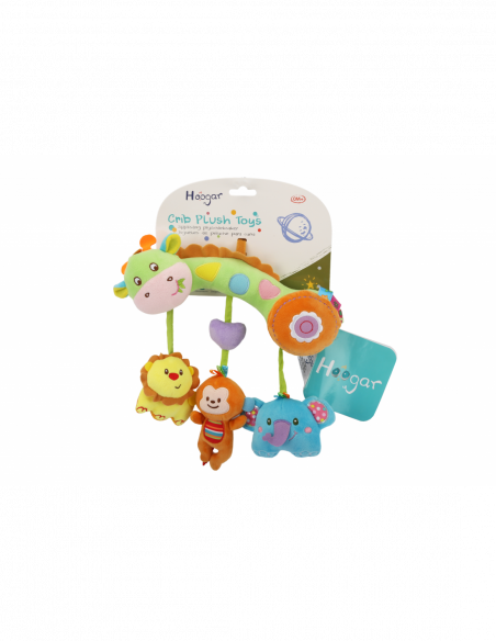 Rail stroller &Crib series-Giraffe. Crinkle Ears, Lion Squeaker, Monkey Rattles, Peek-A-Boo mirror included. 100% polyster. Dimensions:25*25.5*6.5 cm.