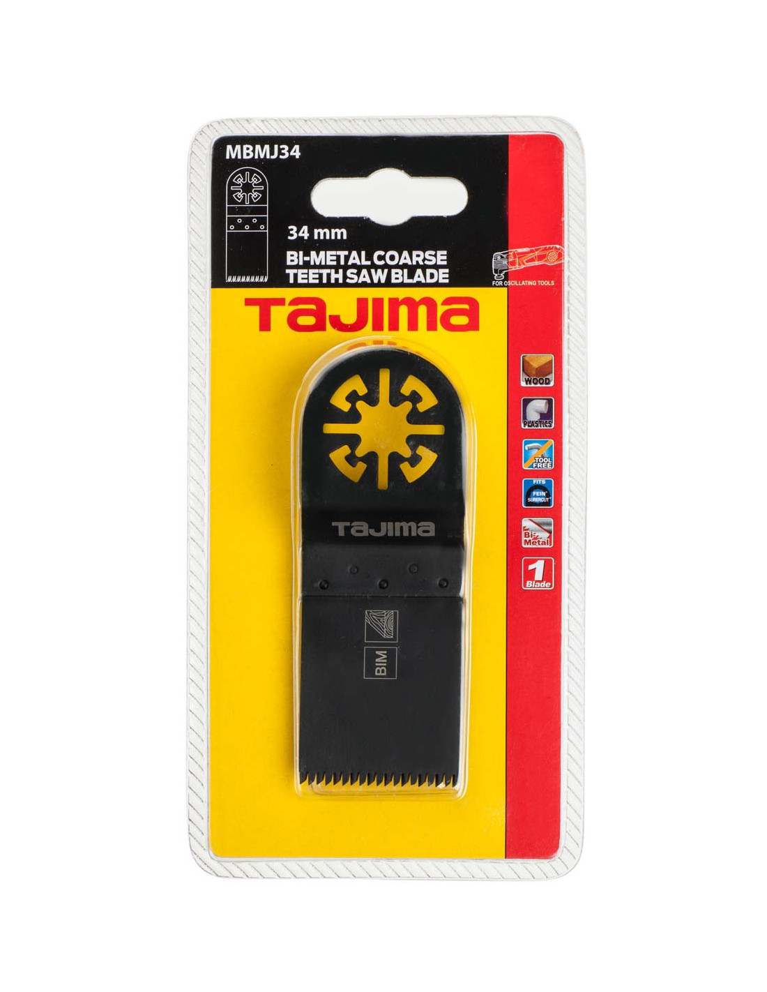 Tajima bimetallist saeleht jämedate hammaste ja sirge 34 mm profiiliga on vastupidav multitööriista tarvik, mis on mõeldud tõhusaks puidu lõikamiseks. Bimetallist konstruktsioon tagab optimaalse painduvuse ja vastupidavuse, sobides hästi ka nõudlikumateks puidutöödeks. Jämedad hambad võimaldavad kiiret ja jõulist lõikamist, isegi naeltega puidu puhul, samal ajal kui 34 mm laiune tera pakub täpsust nii detailseteks töödeks kui ka kitsastes kohtades töötamiseks. Sirge terakuju muudab selle kasutamise mitmekülgseks enamikele standardsetele vibreerivatele multitööriistadele, võimaldades kiiret ja lihtsat paigaldust ning teravahetust. Olulisemad omadused ja tehnilised andmed: