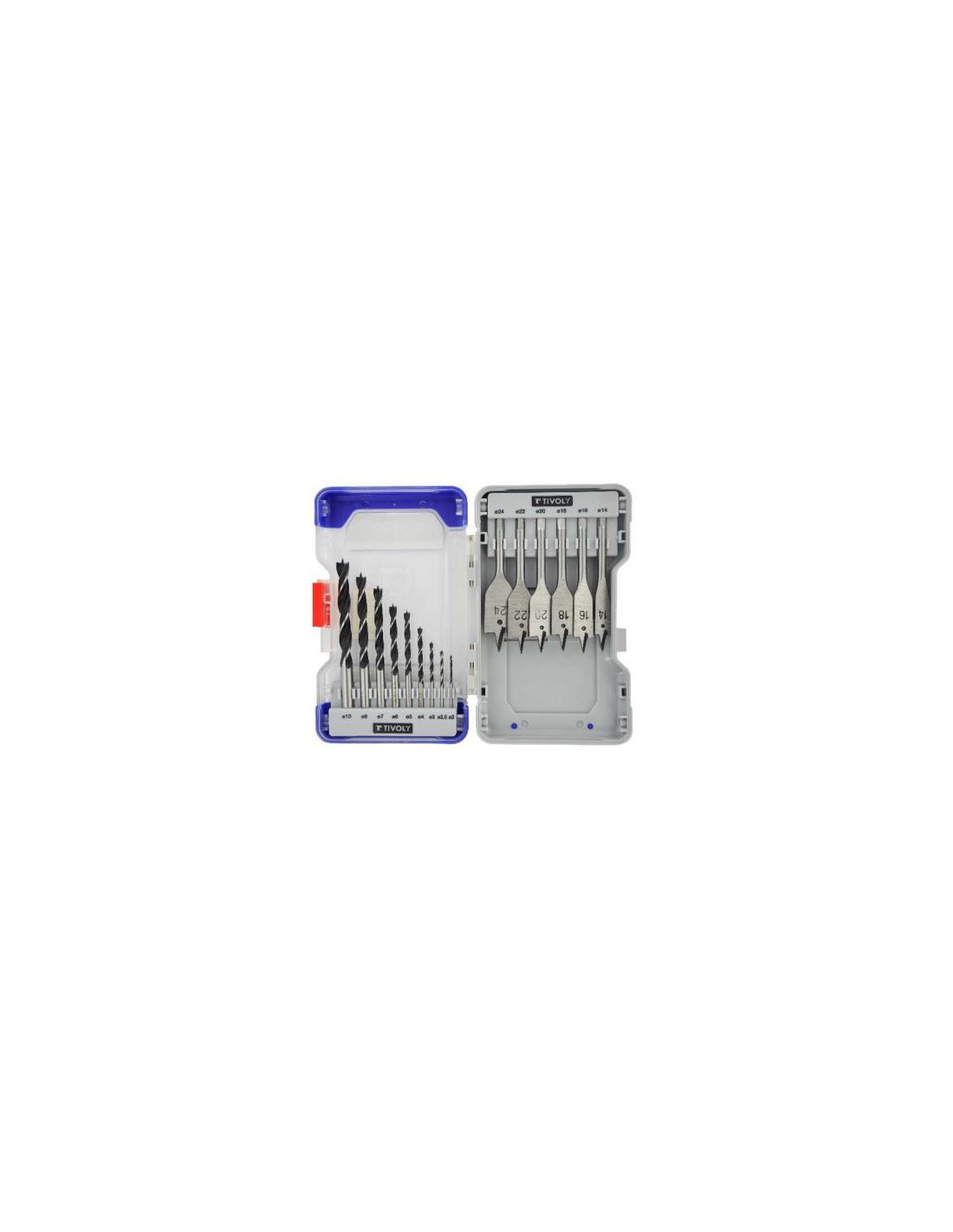 Tivoly puidupuuride komplekt – 15-osaline, Ø2–24mm, kolmiktipuga ja lamedad puurid, RANGER karp