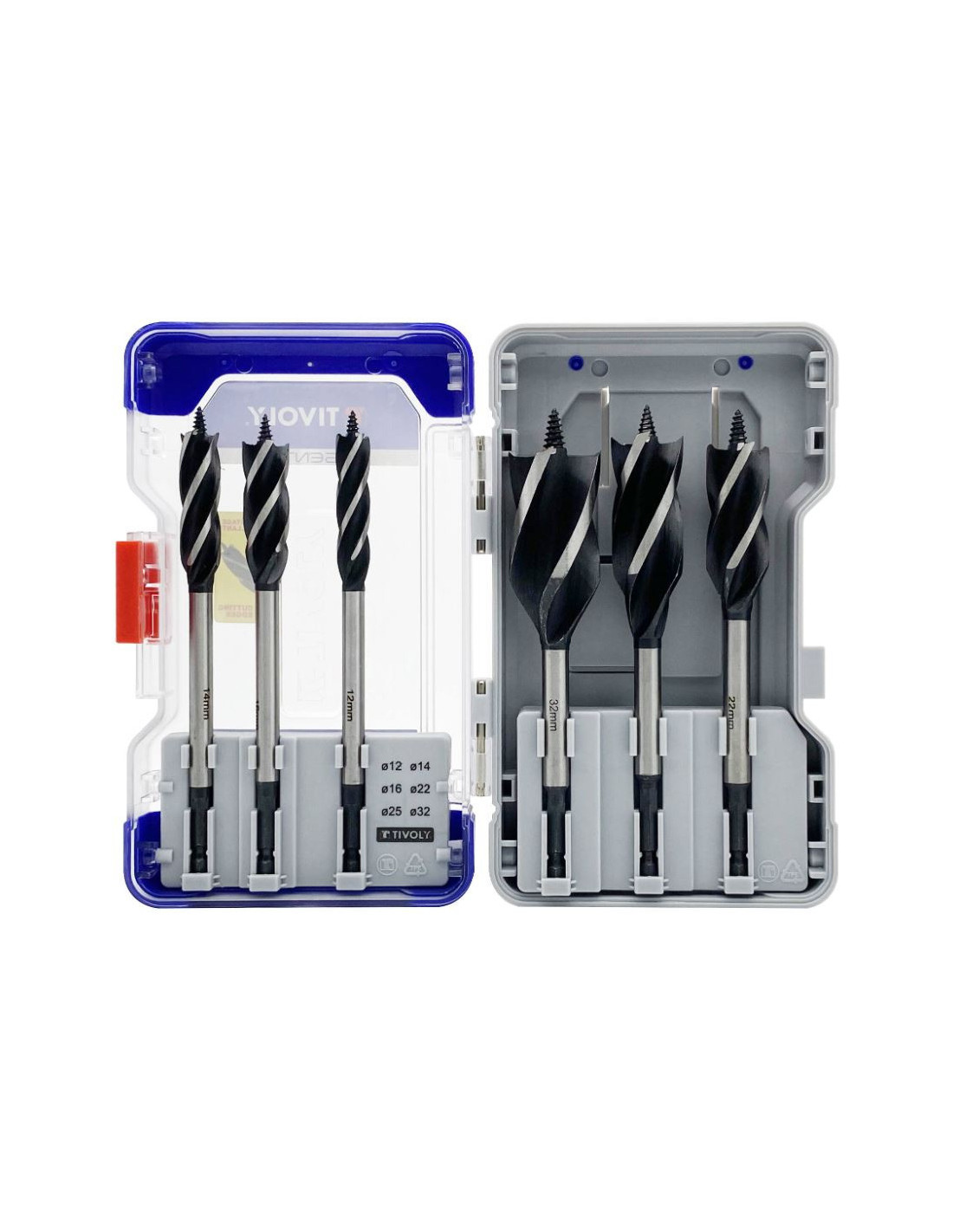 Tivoly puidupuuride komplekt – 6-osaline Ø12/14/16/22/25/32 mm, 4 lõikeserva, 6,35 mm kuusnurkvars, süsinikterasest
