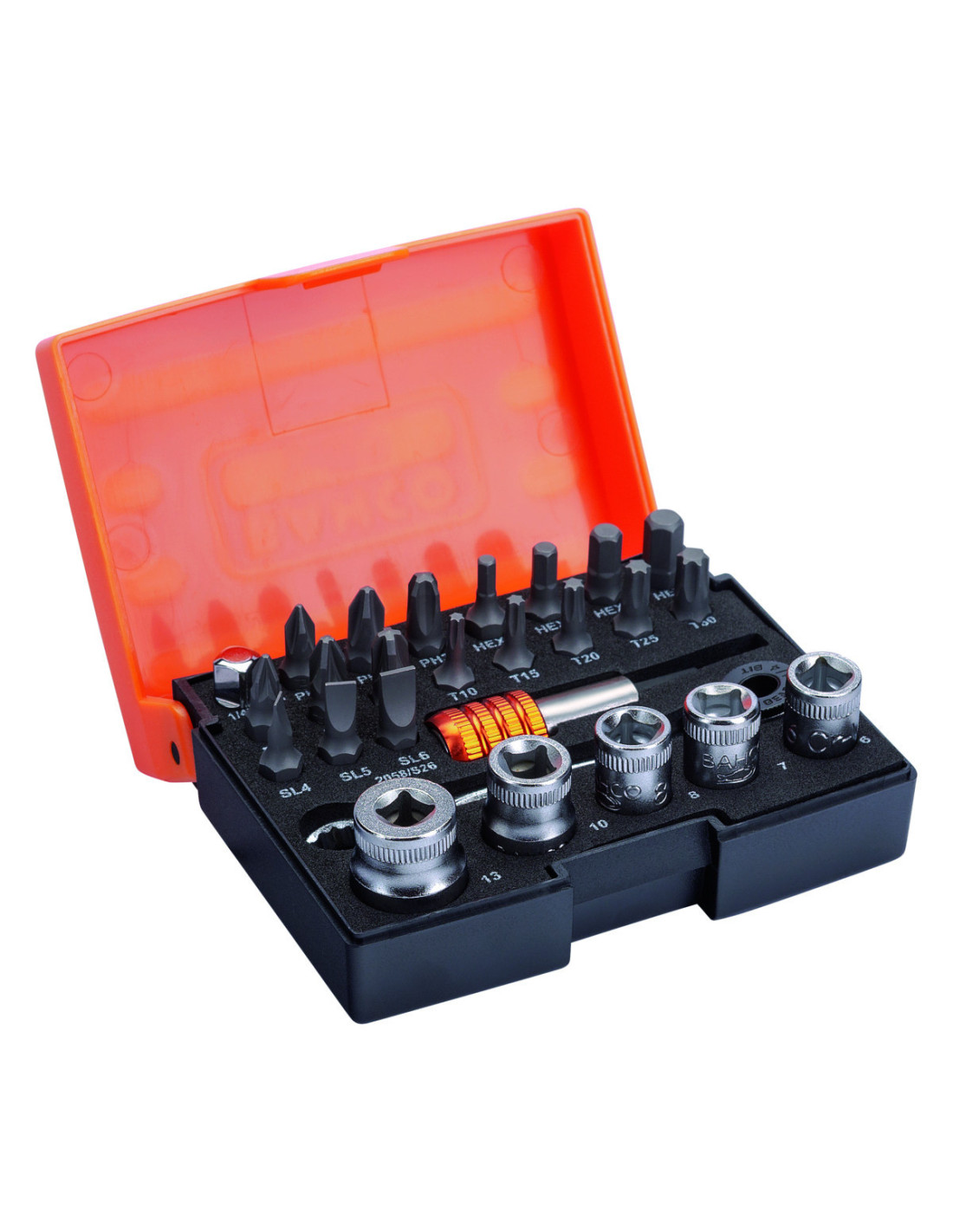 • Includes 26 pieces: 18 bits + 5 sockets + 1 bit ratchet + 1 adaptor + 1 bit holder