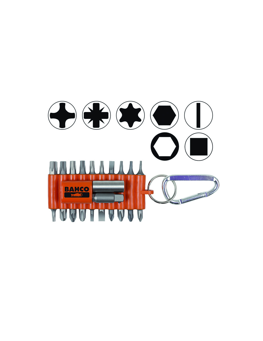 Bahco otsakute komplekt – 22 osa PH, PZ, TORX, SL, magnetiline 1/4" hoidik, kummist karabiiniga hoidik