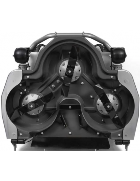 The Combi 100 Q Plus cutting deck has a cutting width of 100 cm and can be used in mulching or rear-discharge mode. It is equipped with three blades. The cutting height can be electrically adjusted and can be set between 25 and 90 mm. The QuickFlip system enables the cutting deck to be easily raised for maintenance and cleaning, in less than 30 seconds. The cutting deck is equipped with anti-scalp wheels.
