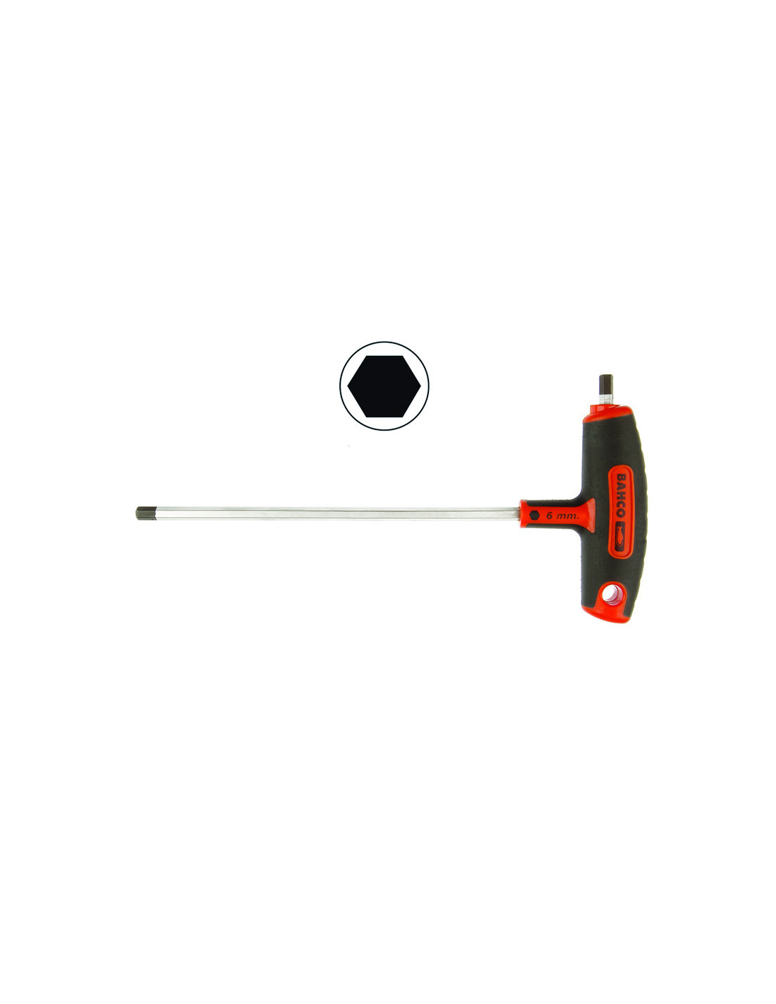 • T-handle screwdriver for hexagonal head screws • Black oxide tip for higher accuracy • Two-component soft grip handle provides extra comfort and reduces pressure points in the hand • Markings on the handle for quick identification of the tip • Long blade to use as a T-shaped wrench. Provides high-torque transfer. The long blade allows to apply a controlled torque and provides an easy access to screws requiring depth • The short 90º blade is used for extreme torque or to work in areas where height is limited • Chrome plated blade for high protection against corrosion • Integrated hanging hole