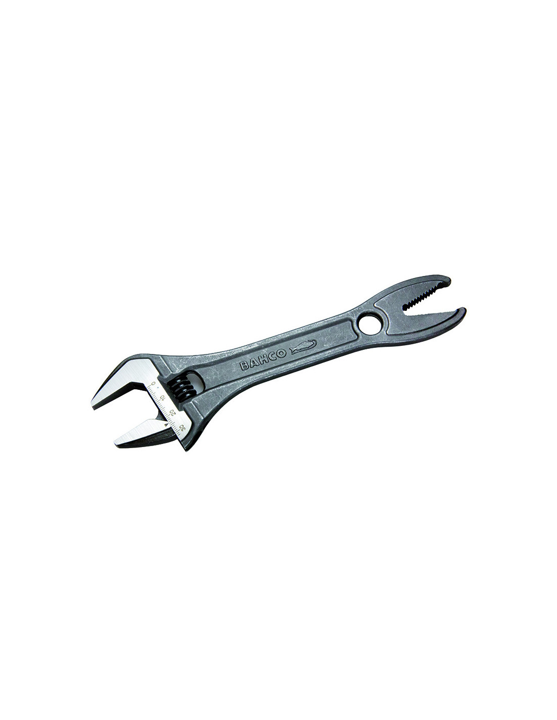 • Shark jaw with adjustable jaws at one end and a serrated pipe jaw at the other end for pipe fittings