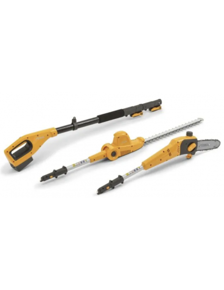 - 55cm telescopic extension - body + tool can reach 2.75m (hedge trimmer) and 2.55m (pruner saw)