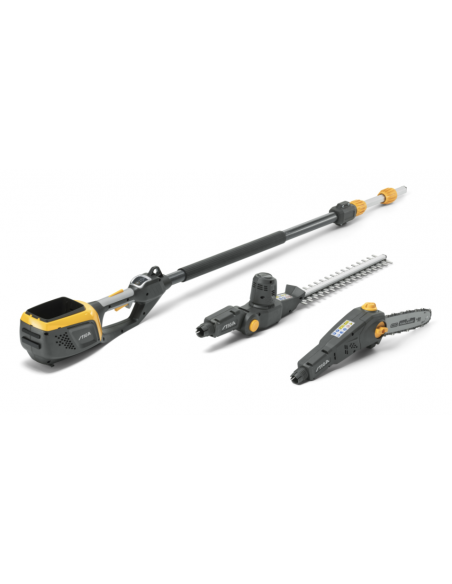 STIGA akumultitööriist MT 500e komplekti kuuluvad kettsaag, hekilõikur ja teleskoopvars. Stiga akumultitööriist MT 500e sobib ideaalselt hekkide lõikamiseks ja viimistlemiseks ning okste lõikamiseks puudelt ja põõsastelt. Tööriist kasutab 48V ja 2,0 Ah liitiumioonakut (ei kuulu komplekti). Hekilõikuri tera on 46 cm pikk ja käepide on 90 ° pööratav. Kettsael on 25 cm latt. Telskoopvars tagab maksimaalse töökõrguse hekipügajaga 4m ning oksasaega 4,3m.