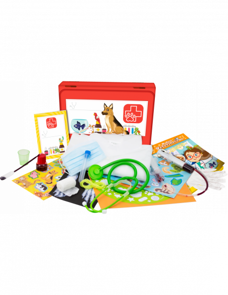 Step into the vet´s office, put on your lab coat and dive into the world of veterinary medicine with this bo. "My First Veterinary Kit"! Discover how to keep your four-legged friends happy and healthy. An educational bo. science kit that encourages fun, creativity and brain development. The perfect gift for any young scientist. An educational bo. science kit that encourages fun, creativity and brain development. The perfect gift for any young scientist.