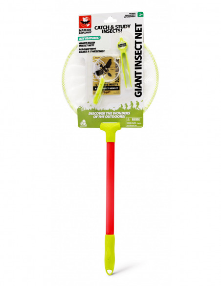 Discover the wonders of the outdoors with nature explorer giant insect net! Capture and study large flying insects, butterflies and more. Bonus inspection set included to collect, magnify and view smaller insects for all of your outdoor discoveries! Large net with a 9.5" (24 cm) diameter.