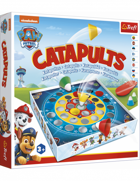 Katapuldid - Käpapatrull. Katapuldid on lõbus osavusmäng kogu perele. Kes tabab parima laskurina märklaua keskosa? Alustage mänguga ja uurige välja! Katapuldid on lõbus mäng, mis arendab näpuosavust ja pakub igal mängukorral palju rõõmu. Karbi sisu: 12 lendavat mängunuppu, 4 katapulti , 4 puud, mängulaud, juhend.