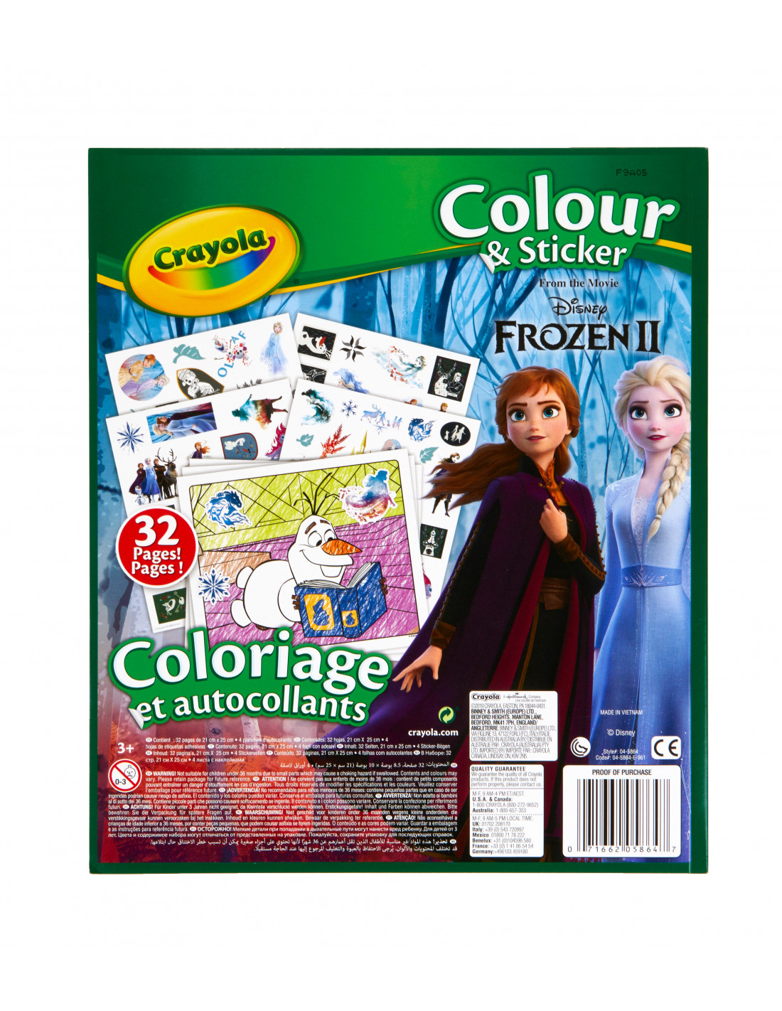 CRAYOLA Jääkuninganna II Värvimis- ja kleepimisraamat. 32 lehekülge mõõdus 21 x 25cm (4 lehekülge kleebistega). Vanusegrupp: 3+
