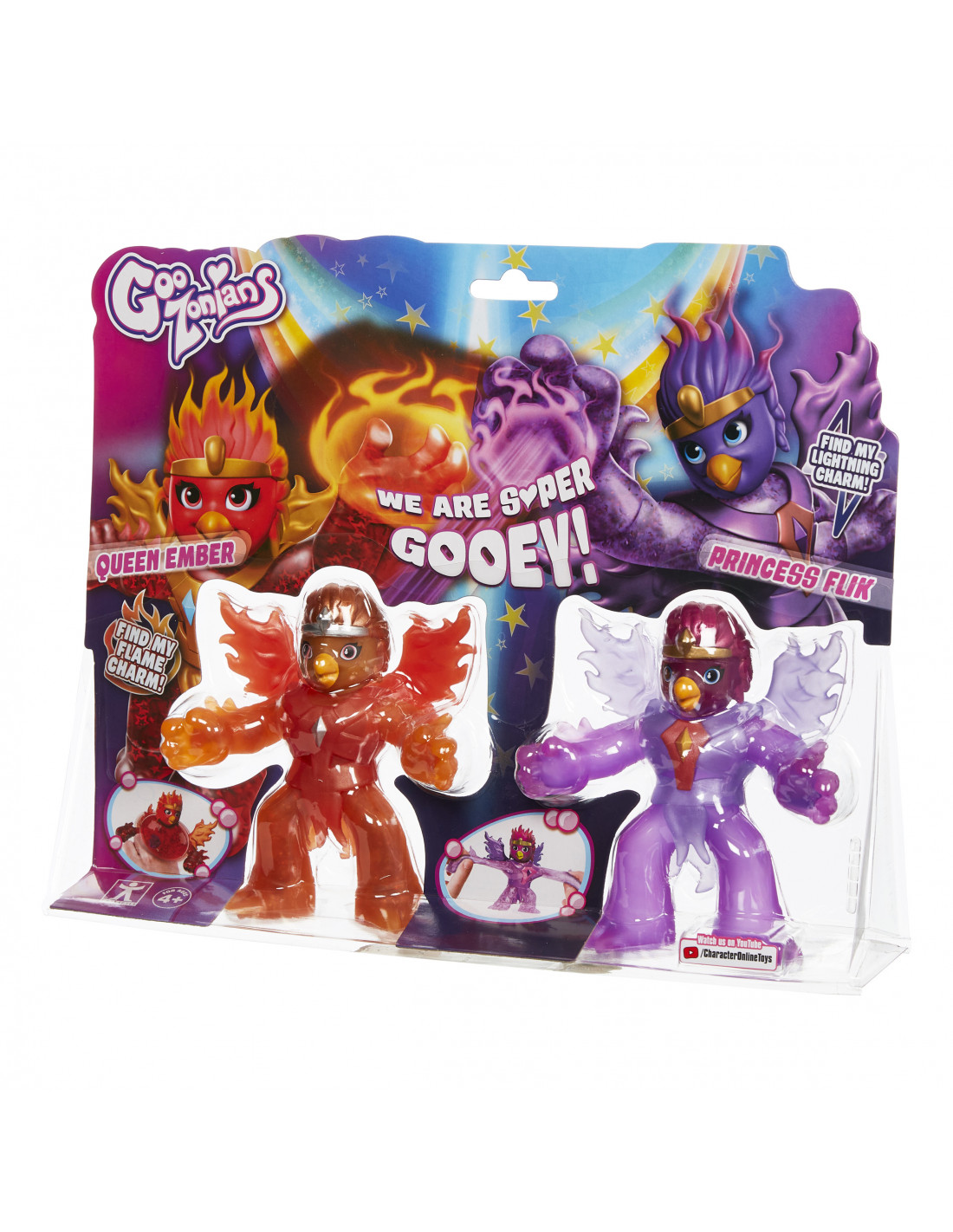Tutvustame GooZonians - kõige venivamad superkangelased, kes kaitsevad GooZonia maagilist kuningriiki - maad, kus kõike läbib lummav vikerkaarevärviline lima! Ole valmis maagilisteks seiklusteks koos uute superpehmete, super venivate kangelastega, mida ei ole veel keegi teine näinud! Tutvu kuninganna Emberi, printsess Fliki ja sõpradega, kes žongleerivad uute kummaliste võimete, kuninglike kohustuste ja meeskonna eesmärkidega, takistades samal ajal ApoGoolypse! See eriline GooZoniani kangelaste pakend sisaldab kuninganna Emberi ja printsess Fliki eksklusiivseid versioone, millel on seni nägemata täidised. Venita ja suru oma GooZoniani kangelast ja nad tulevad alati oma algse kuju juurde tagasi!