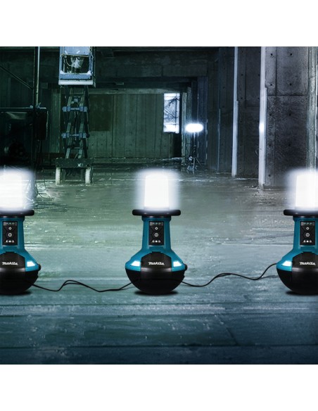 DML810 предназначен для освещения рабочих мест в самых суровых условиях, повышенной защиты от пыли и влаги IP54. Округлое основание предотвращает непроизвольное перемещение светильника и обеспечивает его самопроизвольное возвращение в вертикальное положение. DML810 работает как с батареями 18 В, так и с переменным током (кабель входит в комплект). Максимальное рабочее время до 18 часов (при использовании 2х батарей емкостью 6,0 Ач ). До 8 светильников могут быть подключены друг к другу с помощью переменного тока. Батарея и зарядка в комплект не входят.