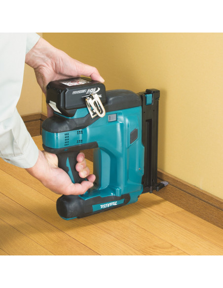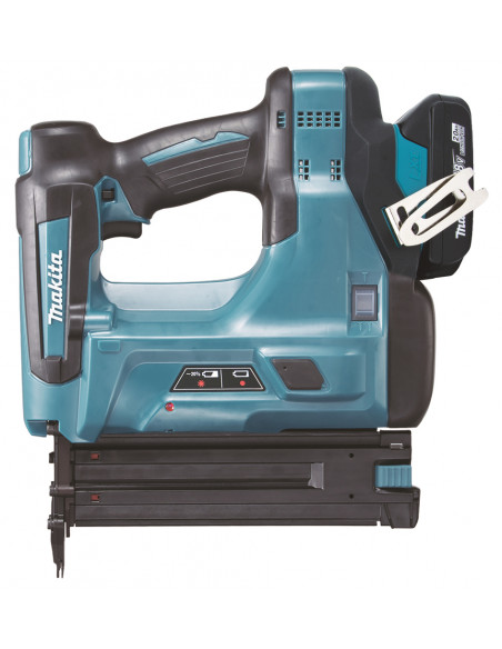 Финишный Гвоздевой пистолет, внутри которого компрессор позволяет работать как пистолет со сжатым воздухом. Подходят гвозди типа 18 г, толщиной 1,2 мм и длиной 15-50 мм. Допускает повторные и одиночные занятия. Установка глубины фунта.
