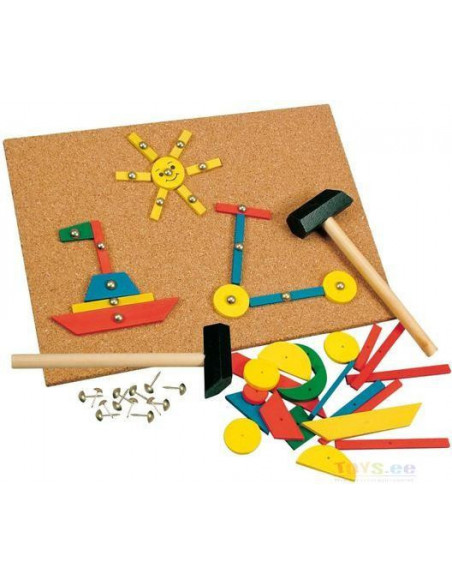 Lõbus ja lihtne viis arendada lapse loovust, keskendumisvõimet ning koordinatsiooni. Selle algupärase mänguga Hammer-Tic on kaasas korklaud, värviklotsikesed ja haamer, mille abil su laps saab luua igasuguseid pilte, mida vaid soovib! Suurepärane kingitus, mis sobib hästi tubaseks tegevuseks. Komplekt on korduvkasutatav.
