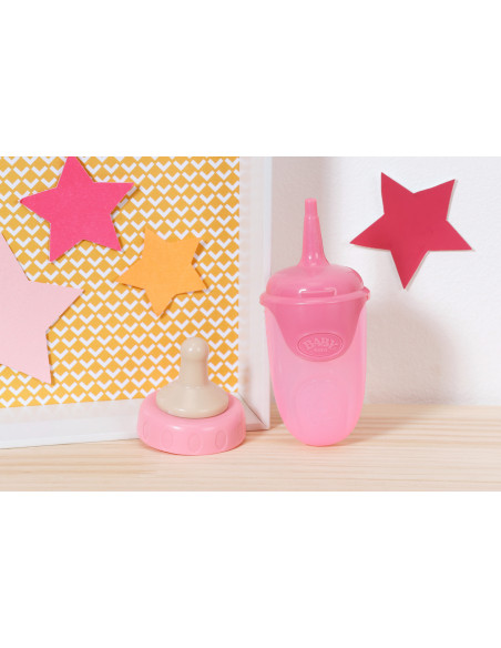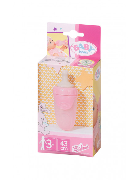 Tere tulemast BABY BORN nukumaailma! See on kujutlusvõimeline rollimäng värvikas mängumaailmas! Baby Borniga mängimine ei muutu kunagi igavaks! Üks päev on ta beebi, kelle eest on vaja hoolitseda, teine päev on ta sõber ja kaaslane toredateks seiklusteks. Kaugelt vaadates tundub, et pudelis on mõni maitsev jook- kas see on punane tee, või hoopis maasika piimakokteil, või üldse apelsiinimahl. Ei, Baby Borni pudeleid on nüüd erinevates värvides. Iga Baby Borni lutipudeli ots näeb välja kui päris lutt, kuid korgi all on Baby Borni toitmiseks mõeldud joogitihvt. Lutipudelid on mõeldud Baby Born 43 cm pikkadele nukkudele.