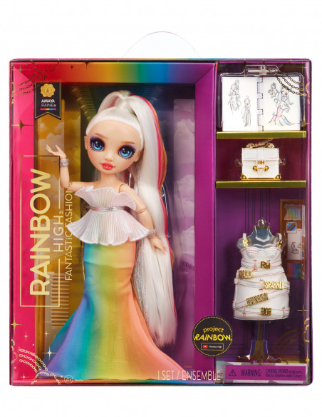 Tutvustame Rainbow High™ Fantastic Fashion™ mängukomplekte. Esmakordselt on sul võimalus saada enda lemmik Rainbow High tegelaste poolt kujundatud mängulised ja värvilised lavakleidid, mida saab ka näha Rainbow High animeeritud sarja 1. hooajas. Ruby, Poppy, Sunny, Jade, Skyler, Violet ja Amaya lasevad nende lõbusate riiete kujundamisel oma tõelistel värvidel särada. Rainbow High™ Fantastic Fashion™ moe nuku mängukomplekt sisaldab nukku, lavakleiti, teist riiete komplekti, nuku aksessuaare ja disainivihikut. Komplekt innustab lapsi järjepidevalt mängima, et nad saaksid taasluua lugusid animasarjast ja välja mõelda oma enda unikaalseid seikluseid.