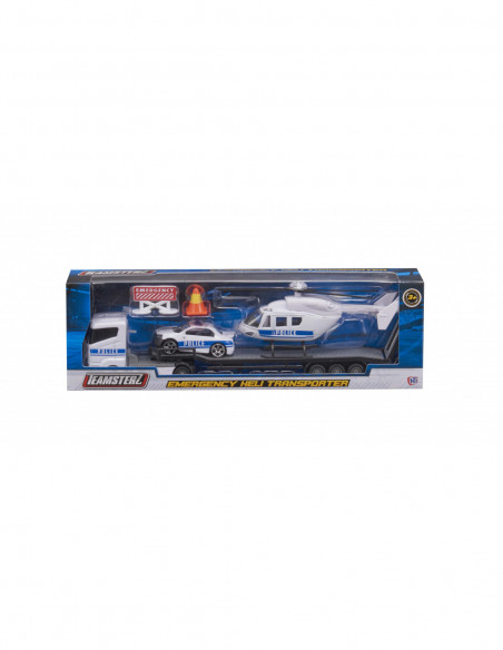 Teamsterz on rahvusvaheliselt tunnustatud kaubamärk, mis on inspireeritud tõsielusõidukite disainist ja omadustest, julgustades kollektsioneerimist ja hindama atraktiivsust. Komplekti kuulub järelhaagisega veok, mis veab päästemeeskonna sõidukeid: helikopterit ning autot. Komplektis on 3 erinevat sõidukit koos lisadega. Valida saab kas poitsei-, tuletõrje- või kiirabiauto vahel.