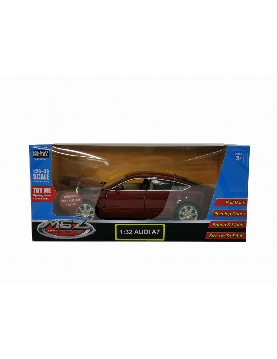 MSZ kaubagrupp keskendub kvaliteetsetele metallist automudelitele. Tehes koostööd üle 30 erineva automärgiga omab MSZ laialdast sortimenti ning valikust leiate selliseid tuntuid mudeleid nagu Lamborghini, Bentley, Audi, Porsche, Land Rover jne. Mudelid on saadaval erinevates suurustes. Konkreetne toode on Audi A7 automudel suuruses 1:32. Mudelil on tagasitõmmatav mehhanism, avanevad uksed ja kapott ning on valguse ja heliga. Saadaval erinevad toonid.