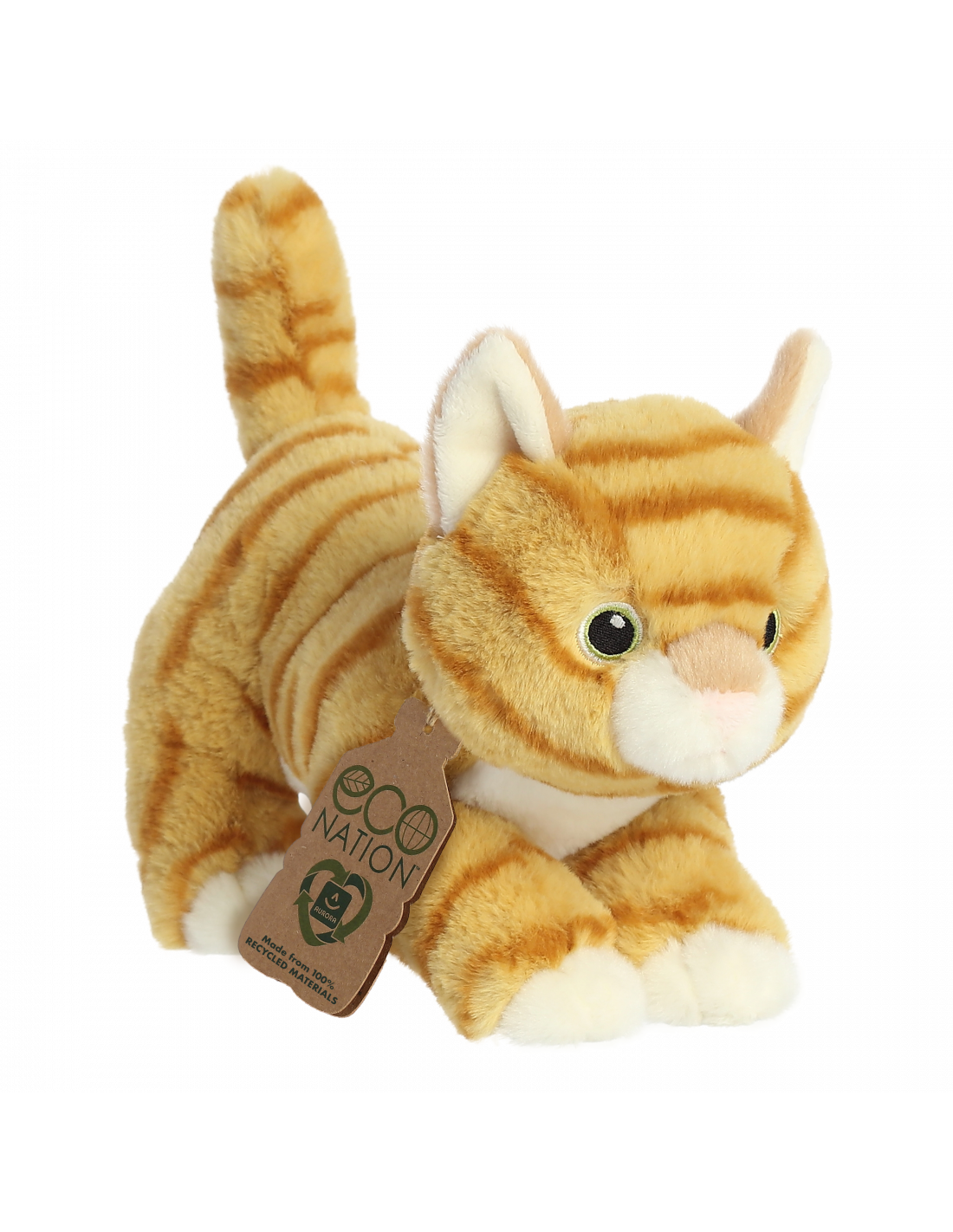 Aurora World´s Eco Nation collection continues to expand with your unique, and favorite animal friends! Eco Nation is our sustainable plush line made from 100% recycled materials. Bring home your favorite animal that has an extremely soft, high quality feel made from recycled plastic bottles. This Orange Tabby is a orange striped kitty, has adorable embroidered eyes, and comes with an Eco Nation bottle tag also made from recycled materials.