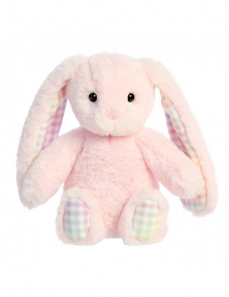Take Hops Bunny along side you as you hippity-hop down the bunny trail this Easter! She is a pretty pink rabbit with a beautiful rainbow gingham pattern on her inner ears and paws.