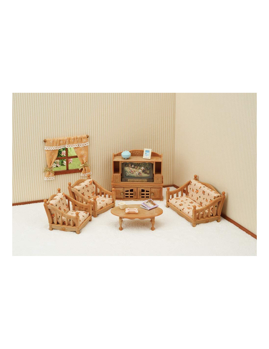 Sylvanian Familes on Jaapanist pärit kaubamärk, mille iga detail on valmistatud filigraanse täpsusega matkides ideaalselt "päris maailma". Komplekti kuulub diivan, kaks tugitooli, diivanilaud ja värviline televiisor koos alusega. Kõik mis vaja elutoa sisustamiseks.