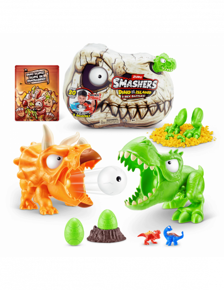 Löö Dino kolju lahti, jälgi aardekaarti ja ava liiva, lima ja muud, et leida 2 eepilist Smashersi dinosaurust, mida ehitada ja võidelda! Rohkem kui 20 üllatust sees!