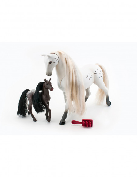 Kõik armastavad hobuseid! Lanard Toys Royal Breeds sarja kuuluvad mänguasjad sobivad ideaalselt hobuseid armastavale lapsele. See suurepärane duo hõõrub nina nagu tõeline ema ja hobusevarssg. Ema hoolitseb oma varsa eest ja hõõrub nina tema vastu. Saate hoolitseda mõlema hobuse pika, ilusa ja pehme laka eest. Lisa oma hobusefiguuride kollektsiooni kvaliteetseid Royal Breeds sarja mänguasju või üllata oma hobuseid armastavat last armsa kingitusega!