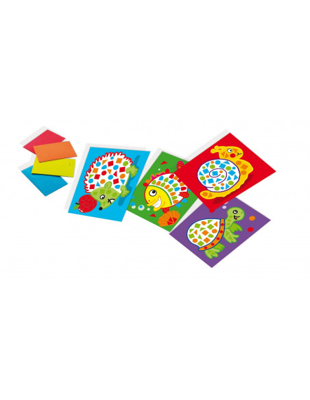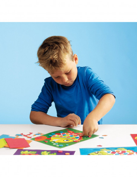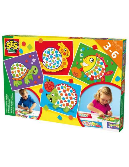 Parim viis midagi selgeks saada on seda harjutada ning see komplekt on suurepärane võimalus teha seda turvaliselt ja lõbusalt. Lõbus ja ainulaadne viis õppida mosaiikide valmistamist: komplektis on lihtsad pildid ja valmislõigatud vahtmaterjalist mosaiikplaadid nende kaunistamiseks – nii on õppimine lihtne ning sellest ei jää mingist segadust. SES on olnud loomemänguasjade spetsialist juba üle 40 aasta. Meie toodete väljatöötamisel on keskne kontseptsioon lapse areng. Kuna esimestel aastatel toimuv areng on oluline, peab lapsel olema võimalus oma andeid arendada ja loovust kasutada. Lisaks loovuse arendamisele on kõige tähtsam kõigi meie toodete ohutus ja kvaliteet! Meie väljatöötatud tooted on iga lapse eri arenguetappide jaoks hädavajalikud.