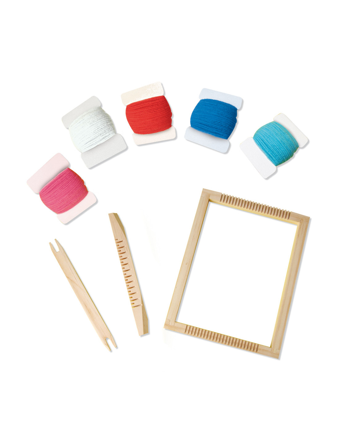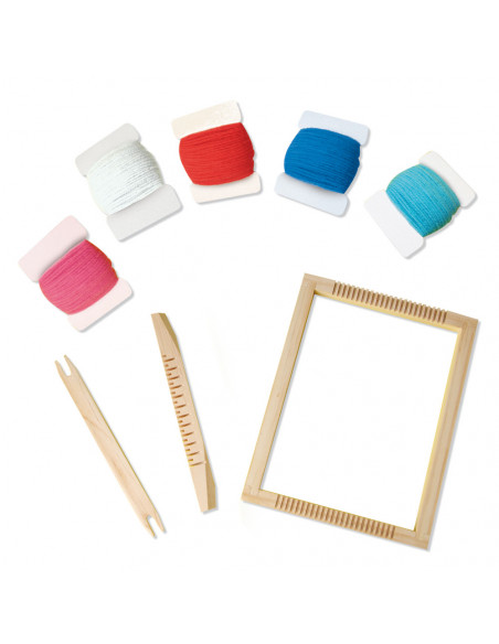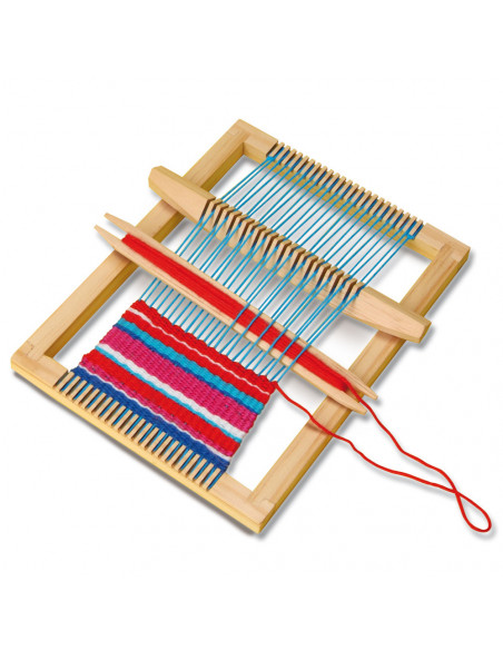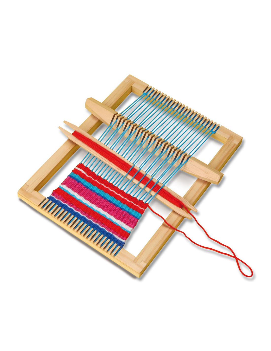 Kestlikud kangasteljed lisatarvikute ja erivärviliste lõngadega uhkete kirevate teoste kudumiseks. Kaasas 60 meetrit lõnga! Mõõdud ca 19 x 3.5 x 19 cm.