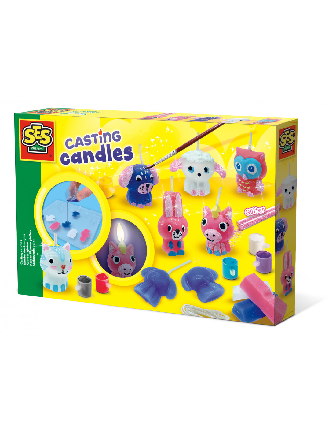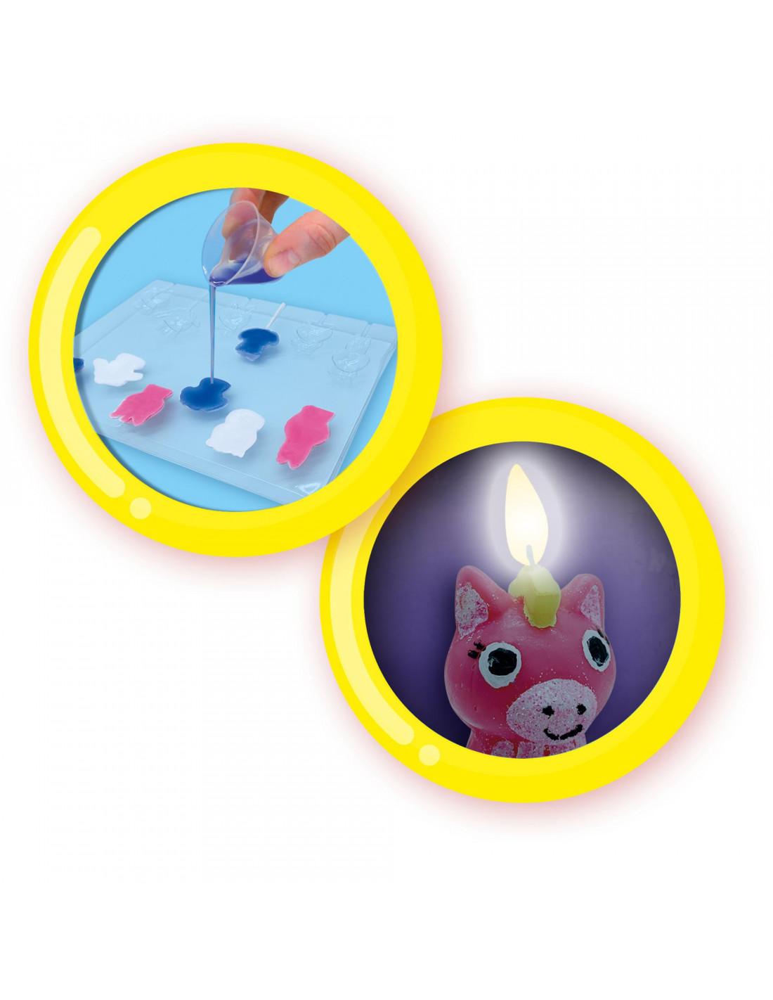 Sulata lõhnaküünalde komplekt mikrolaineahjus ja vala värviline küünlavaha kuude vahvasse loomavormi. Komplektis küünlatahid. Nüüd värvi saadud kujud kaasasolevate värvide ja särapuruga. Need tõeliselt lustlikud omatehtud küünlad on põletamiseks liiga toredad!