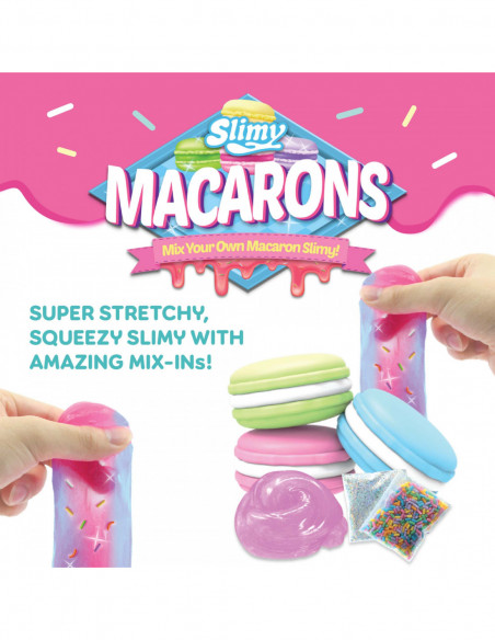 Kõige uuem trend lima tegemises! Uus makrooni temaatiline limakomplekt pakub suurepärast kogemust - miksi omavahel komplektis olevaid limasid (4 erinevat) ning loo enda lima! Alpaca Slimy on kõige pehmem ning kohevam! Gravity Morph – muudab värvi ning paisub enam kui 25% algsest! Sandy Fluff - jookseb läbi sinu sõrmede nagu tõeline liiv ning ei kuiva kunagi ära! Magna Glaze – kõige läikivam! Lisaks on komplektis kaks mix-üllatust (erinevad helmed, glitter, litrid) millega saad oma loodud limale veelgi enam omapärasust lisada.
