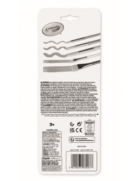 Komplektis on 5 erineva paksuse ja kujuga kvaliteetset pintslit. Nende pintslitega on lapsel lihtsam joonistada erinevaid kunstiteoseid. Peenemate pintslitega saab teha täpsemaid jooni ning lisada oma joonistusele erinevaid detaile. Need pintslid on suurepärane täiendus iga lapse värvikomplektile. Vanusegrupp: 3+